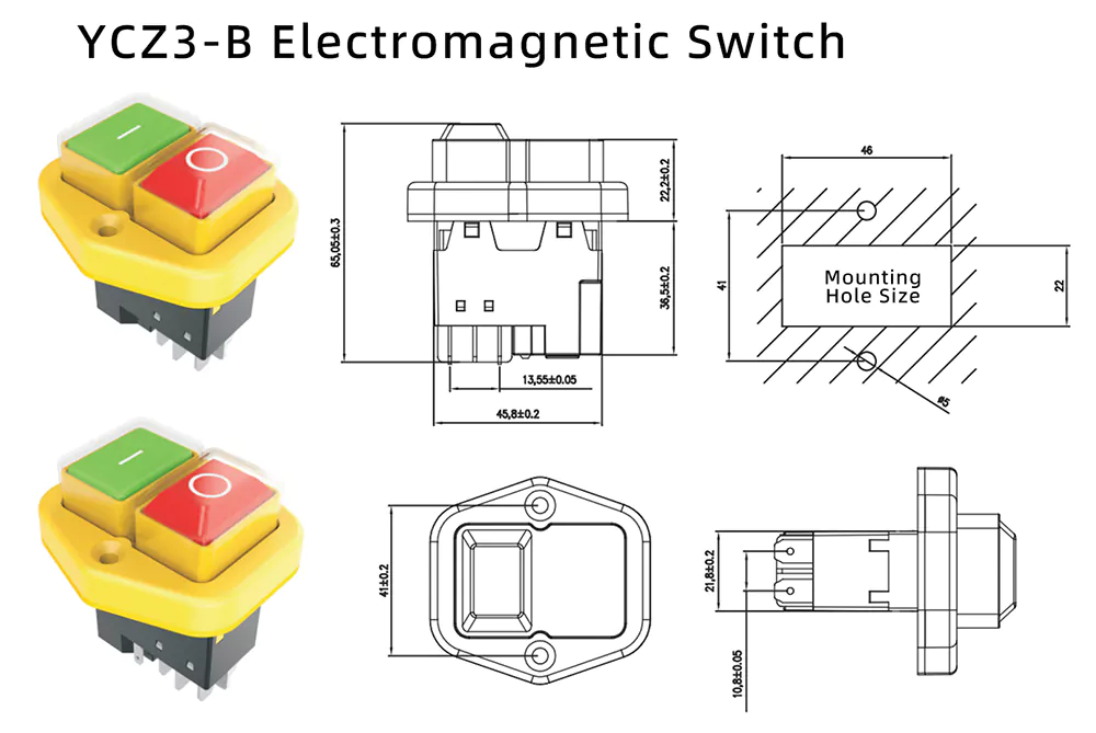 Mit einer mehr als 30-jährigen Erfahrung in der Produktion in der Elektroindustrie zeichnet sich Zhejiang Yaming Electric als erstklassige chinesische Fabrik aus. Unsere zuverlässigen elektrischen Schalter genießen bei Kunden weltweit große Anerkennung für ihre stabile Leistung. Für internationale Großabnehmer und Unternehmenskunden werden maßgeschneiderte OEM-Kooperationen und integrierte Supportlösungen angeboten. Das Modell YCZ3-B, der elektromagnetische 16-A-Drucktastenschalter mit gelber breiter Raute, wird mit anspruchsvoller Handwerkskunst und strenger allgemeiner Qualitätskontrolle hergestellt. Lange Lebensdauer, hervorragende Leistung bei hoher Beanspruchung und hervorragende wasser- und staubdichte Abdichtung sind seine Hauptvorteile. Voreingestellte externe Steckanschlüsse ermöglichen eine schnelle Anpassung an thermische Überlastgeräte, Endschalter, Temperaturkontrollkomponenten und Sensoren für einen umfassenden Sicherheitsschutz des Stromkreises. Es ermöglicht eine schnelle Abschaltung der Hauptstromversorgung bei mechanischen Anomalien und verhindert so Arbeitsunfälle erheblich.