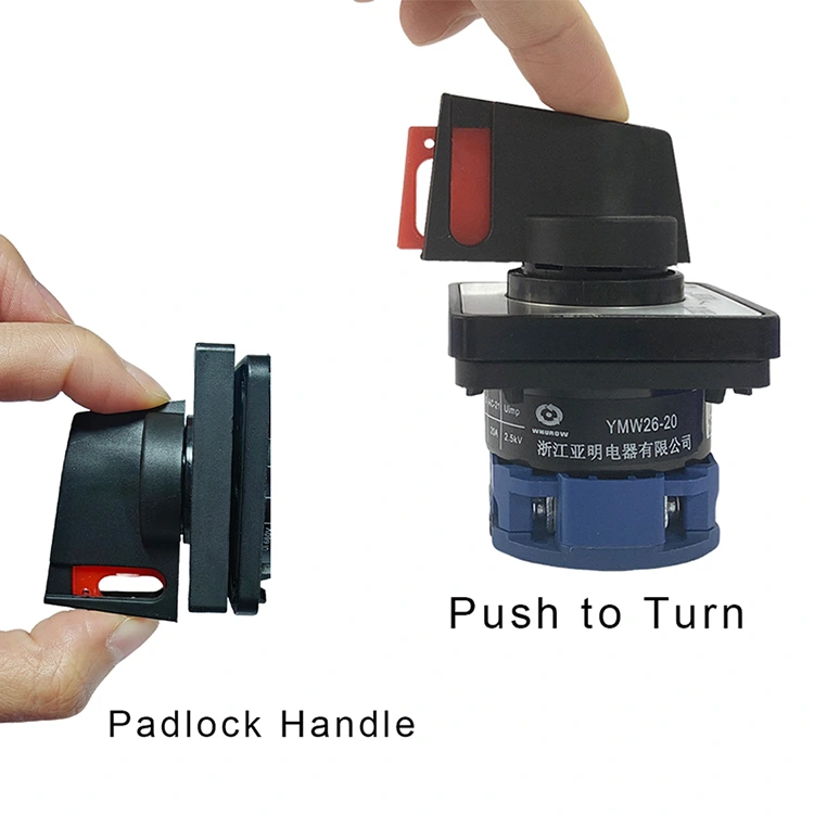 Als professioneller Hersteller elektrischer Schalter mit über 30 Jahren Erfahrung bringt YAMING den 20-A-Drehnockenschalter mit Vorhängeschloss-Drucksteuerung (internes Modell: YMW26-20NS) auf den Markt, ein Meisterwerk, das jahrzehntelange Fertigungserfahrung und technologische Innovation vereint. Dieses Produkt wurde entwickelt, um die Sicherheitskontrolle zu verbessern und Fehlbedienungen vorzubeugen. Es eignet sich für Stromkreise mit Wechselstrom 50 Hz, maximal 690 V und Gleichstrom 240 V und unterstützt einen Nennstrom von bis zu 20 A.