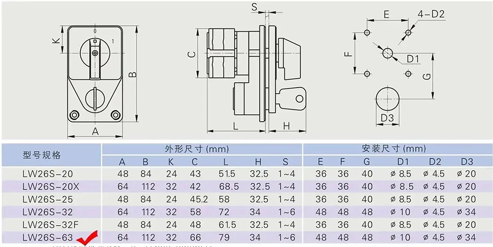 YAMING, ein professioneller Hersteller von Elektroschaltern mit über 30 Jahren Erfahrung, bringt den LW26 63A Key Control Changeover Nockenschalter (internes Modell: YMW26-63YS4) in China auf den Markt. Es gilt für Wechselstromkreise mit 50 Hz und einer Nennspannung von ≤690 V sowie für Gleichstromkreise mit einer Spannung von ≤240 V und unterstützt einen Nennstrom von 63 A. Mit kompaktem Design, umfassenden Funktionen und hervorragender Sicherheitsleistung wird es häufig bei der Umwandlung von Hauptstromkreisen, der direkten Motorsteuerung, der Befehlssteuerung und in Messszenarien eingesetzt und kann an verschiedene raue Arbeitsumgebungen angepasst werden.