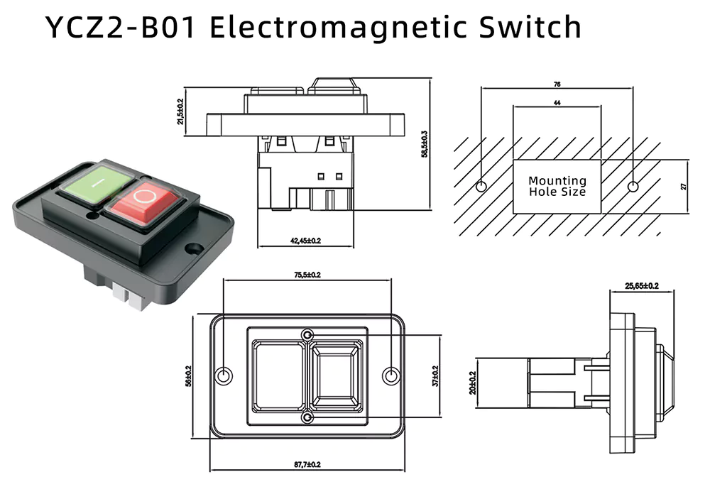 Mit über 30 Jahren Branchenerfahrung hat sich Zhejiang Yaming Electric, ein vertrauenswürdiger chinesischer Hersteller und Lieferant, einen guten Ruf als Top-Anbieter hochwertiger elektrischer Schalter erworben. Wir liefern professionellen Lösungen und gleichbleibender Zuverlässigkeit für globale Kunden. Unterstützt durch fortschrittliche Technologie und strenges Qualitätsmanagement eignet sich unser elektromagnetischer 8-A-Großschalttafel-Drucktastenschalter (internes Modell: YCZ2-B01) ideal für manuelles, gelegentliches Schalten, Unterbrechen und Umwandeln von ohmschen und ohmsch-induktiven Mischlasten und bietet gleichzeitig eine stabile und sichere Steuerung für Wechselstrommotoren mit kleiner Leistung.