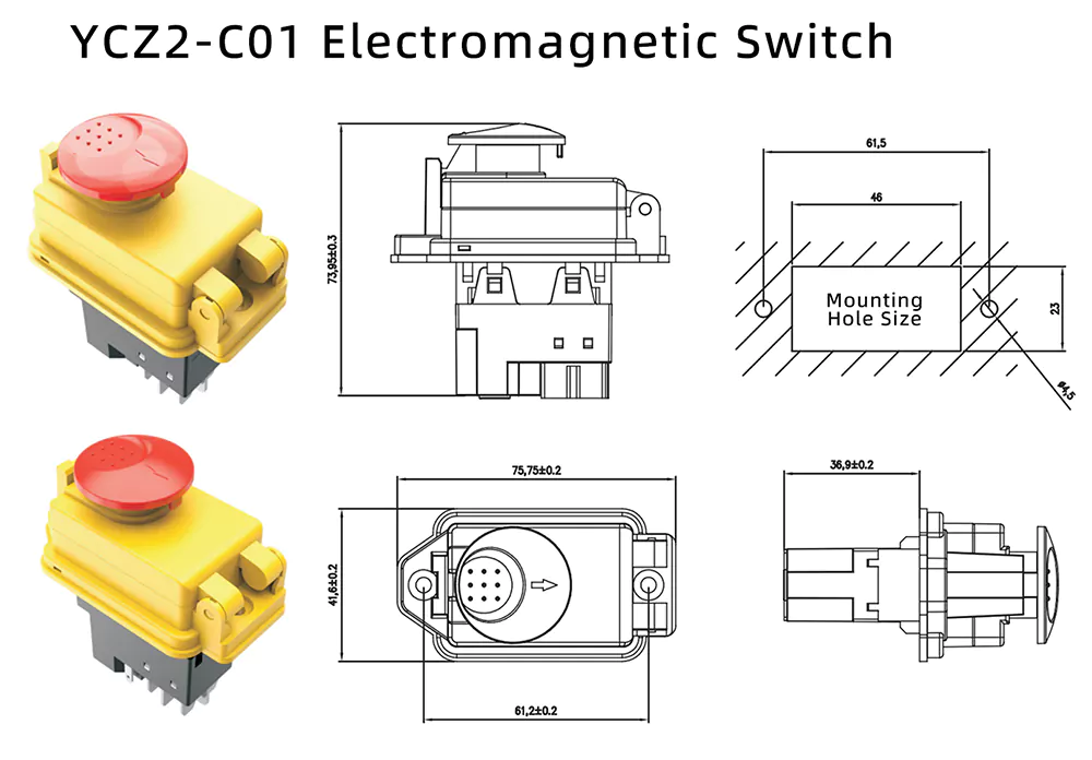 Unser für industrielle Steuerungsumgebungen entwickelter kleiner elektromagnetischer 8-A-Not-Aus-Abdeckungs-Drucktastenschalter (Modell: YCZ2-C01) ist mit einem integrierten Stromausfallschutz und Unterspannungsschutz ausgestattet, um unerwartete Geräteschäden wirksam zu verhindern.