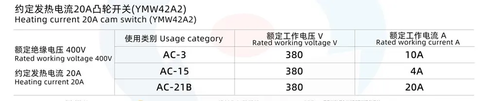 - 20-A-Nockenschalter: Ausgestattet mit Positionierungswinkeln von 30°, 45°, 60°, 90°, unterstützt maximal 12 Betriebspositionen und 1–12 Schalterebenen, die eine Mehrebenen- und Mehrkanalsteuerung realisieren können.