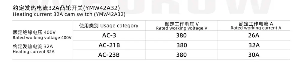 - 32A-Nockenschalter: Nimmt die gleichen Positionierungswinkel von 30°, 45°, 60°, 90° wie das 20A-Modell an, mit maximal 12 Betriebspositionen und 1–12 Schalterebenen. Es verfügt über eine stärkere Stromtragfähigkeit und eignet sich für Anlässe mit höherem Strombedarf.