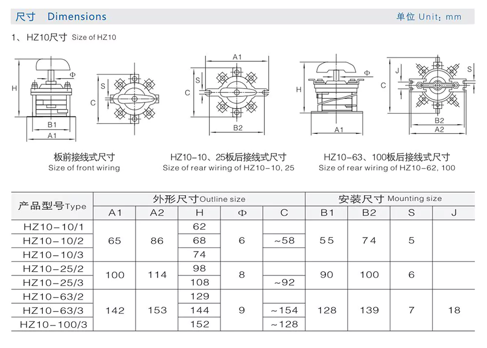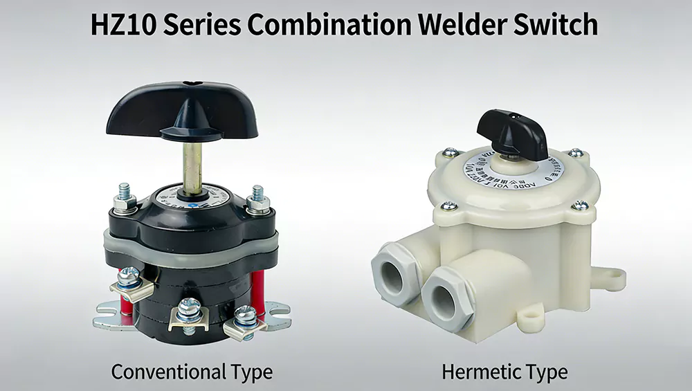 HZ10-100E119 Installation vor der Platine Der 100-A-Kombinationsschalter ermöglicht eine präzise Einstellung des Schweißstroms unter 100 A. Sie eignen sich für die Haupt- und Hilfsstromkreissteuerung in elektrischen Anlagen und werden in 50/60-Hz-Wechselstromsystemen mit Spannungen bis zu 380 V betrieben.